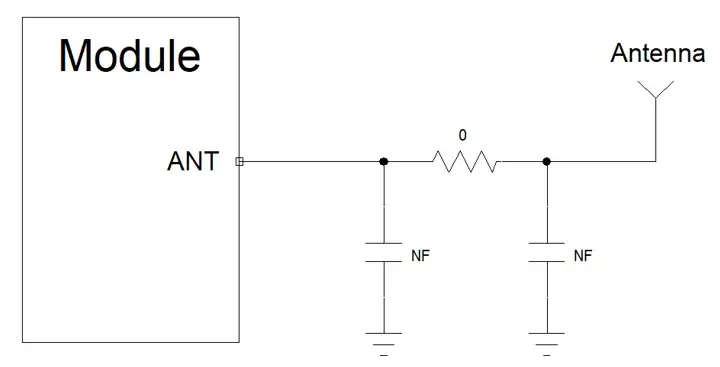 在靠近天线的地方预留Π型匹配电路,两颗电容默认不贴片,电阻默认贴0欧姆,待天线厂调试好天线以后再贴上实际调试的匹配电路;