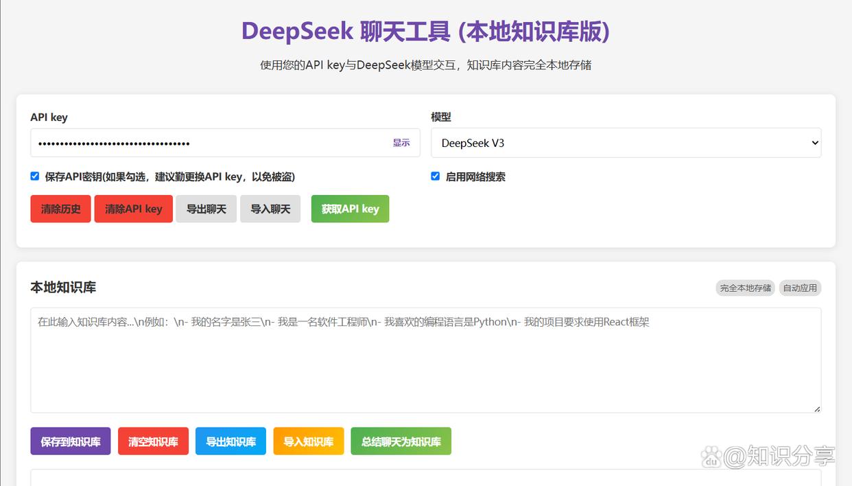 DeepSeek聊天工具最突出的特点是其本地知识库功能:
