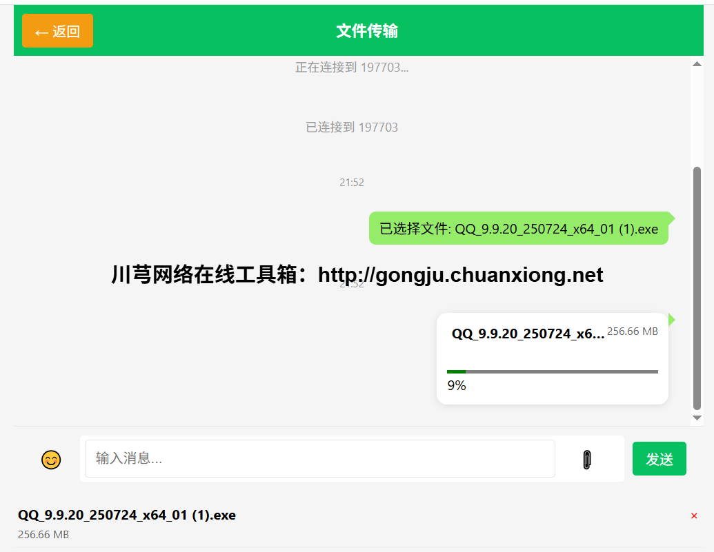 考虑到国内用户广泛使用微信浏览器的习惯,工具箱特别处理了微信浏览器的兼容性问题,并提供了相应的解决方案提示,确保用户在微信内置浏览器中也能顺利使用其核心功能。本地存储功能会自动记住用户设置的块大小偏好,无需每次使用时重新调整,体现了对用户使用习惯的细致关怀。此外,工具还集成了即时聊天功能,用户在传输文件的同时,可发送文字消息进行即时沟通,这在协同办公或共享文件时尤为实用,使得安卓与苹果互传文件的过程不再是单一的数据流传输,而是融入了更多人性化的交互。