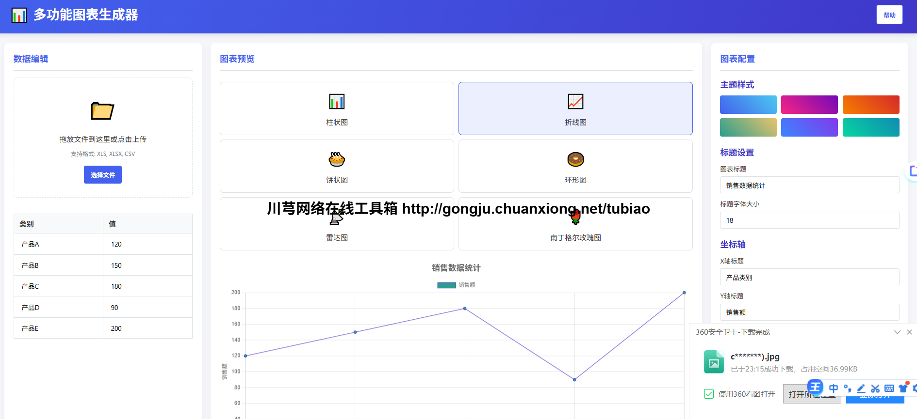 这款位于川芎网络在线工具箱中的多功能图表生成器,为饼状图制作提供了专业解决方案: