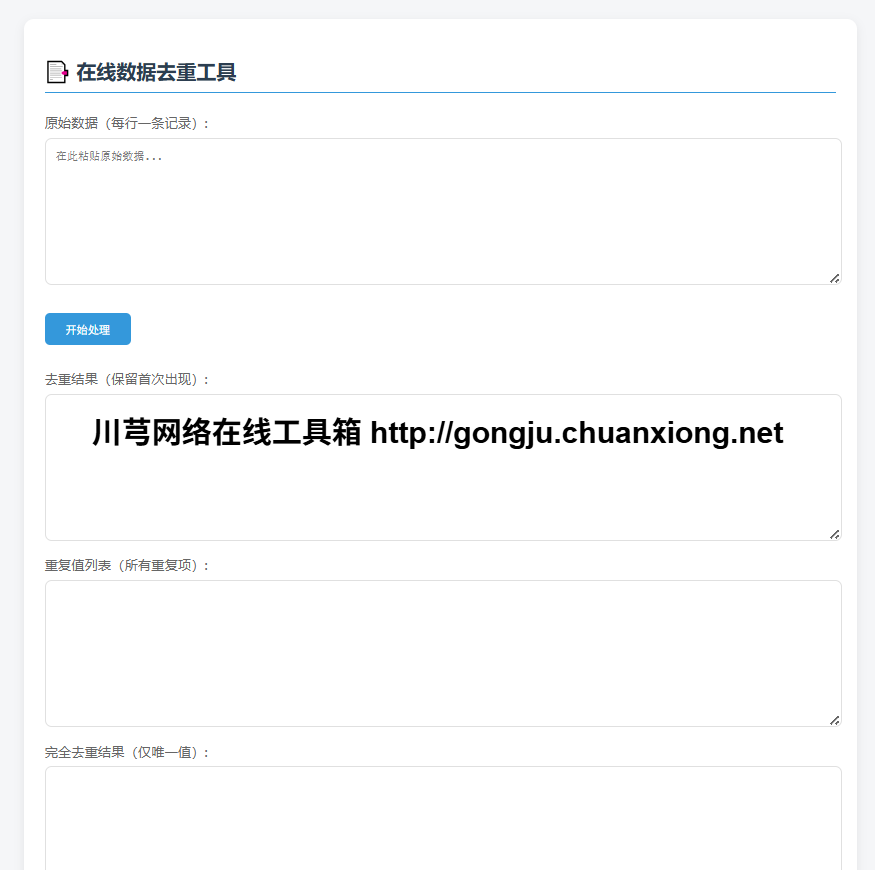 川芎网络在线工具箱始终秉持着提供免费、实用、安全工具的理念。这款去重工具也不例外: