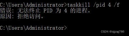 方法三:杀掉进程的命令:taskkill /pid 4 /f ( /f 表示强制关闭该进程)
