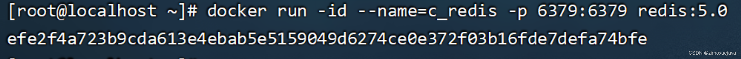 docker run -id --name=c_redis -p 6379:6379 redis:5.0