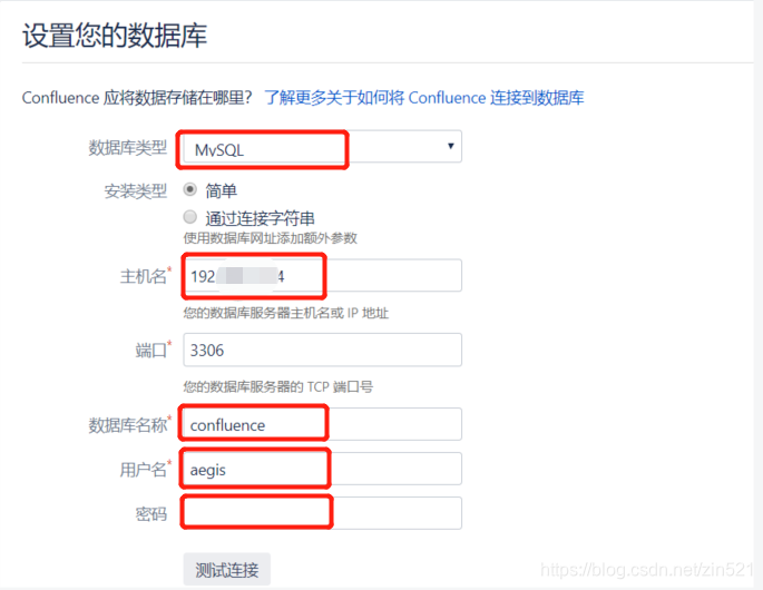 5、点击测试连接,提示成功即可进入下一步,数据库设置注意事项: