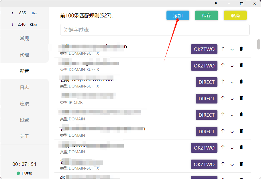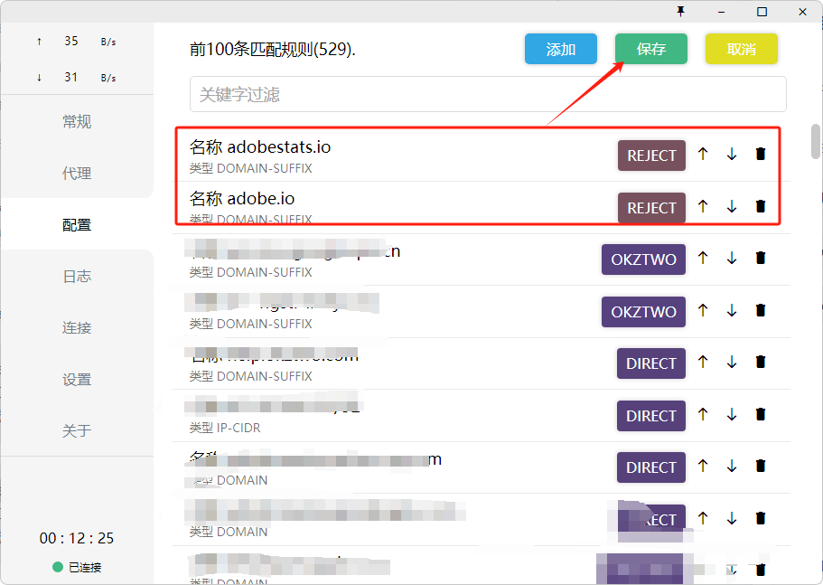 第一第二条就是我们添加好的规则,点击保存就OK了