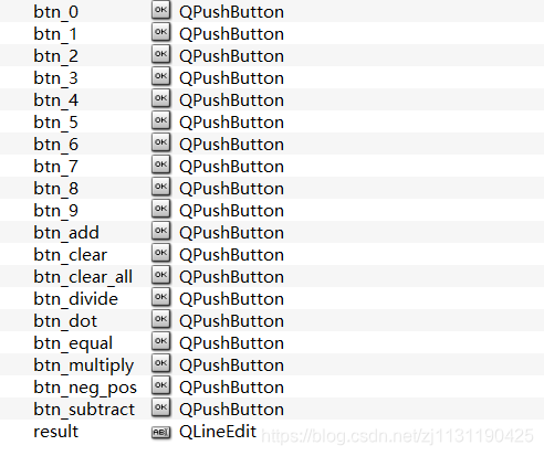 ui->btn_equal, ui->btn_dot, ui->btn_clear, ui->btn_neg_pos