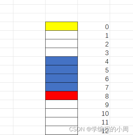 我们一步一步来看:第一个元素在0偏移量处,本身是1个字节, 所以就填充一个单位字节,