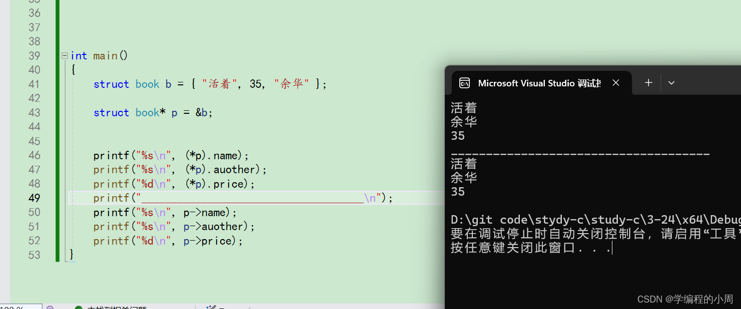 结构体指针也可以用箭头操作符做到同样的事.结构体指针当然可以先解引用得到结构体变量,在用点操作符进行操作,但是这未免有些麻烦,所以箭头操作符就出来了.