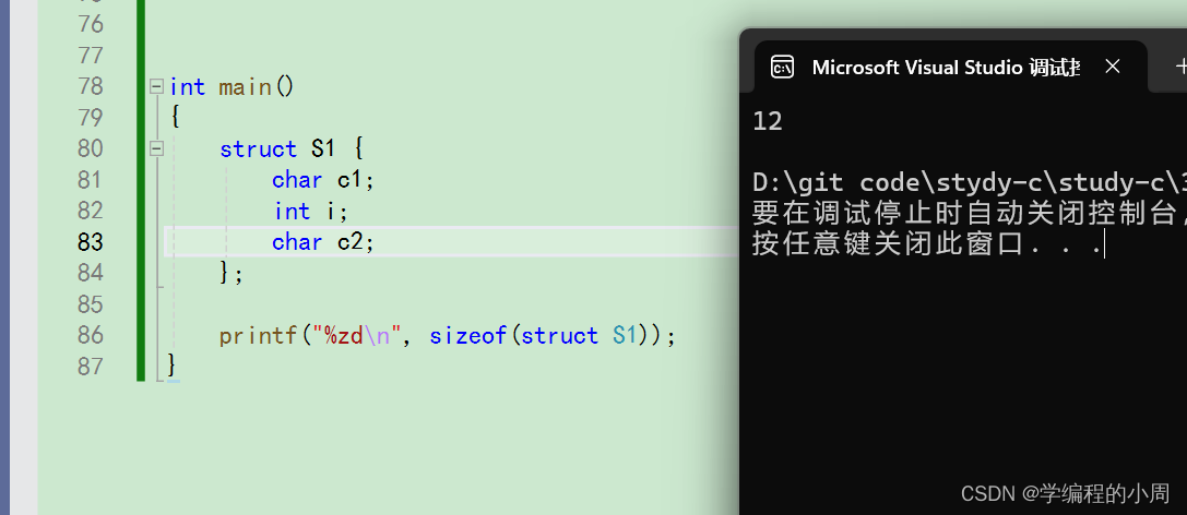 其中第二条中的默认对齐数由编译器决定,在VS中的默认对齐数就是8
