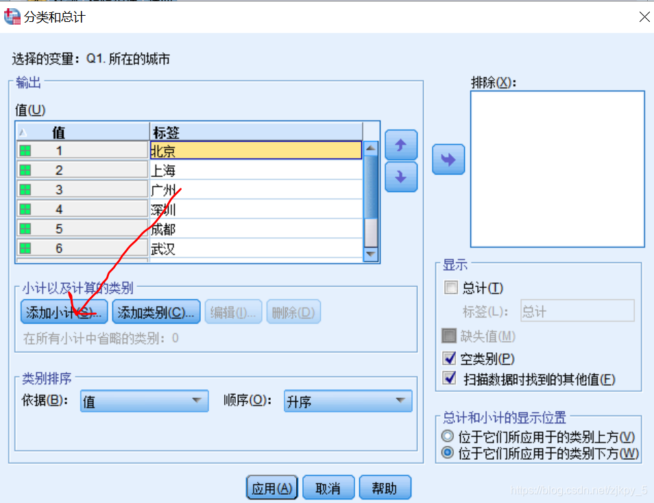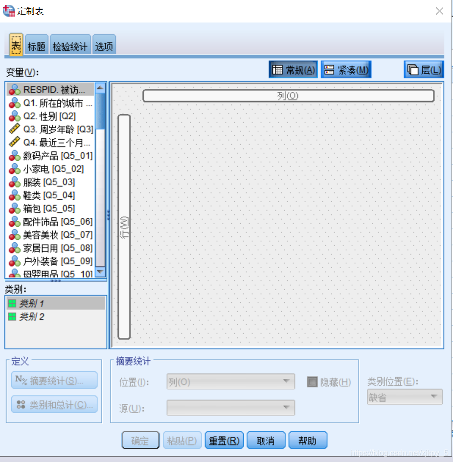 【定制表】,目标变量拖至制表区域,【类别和总计】