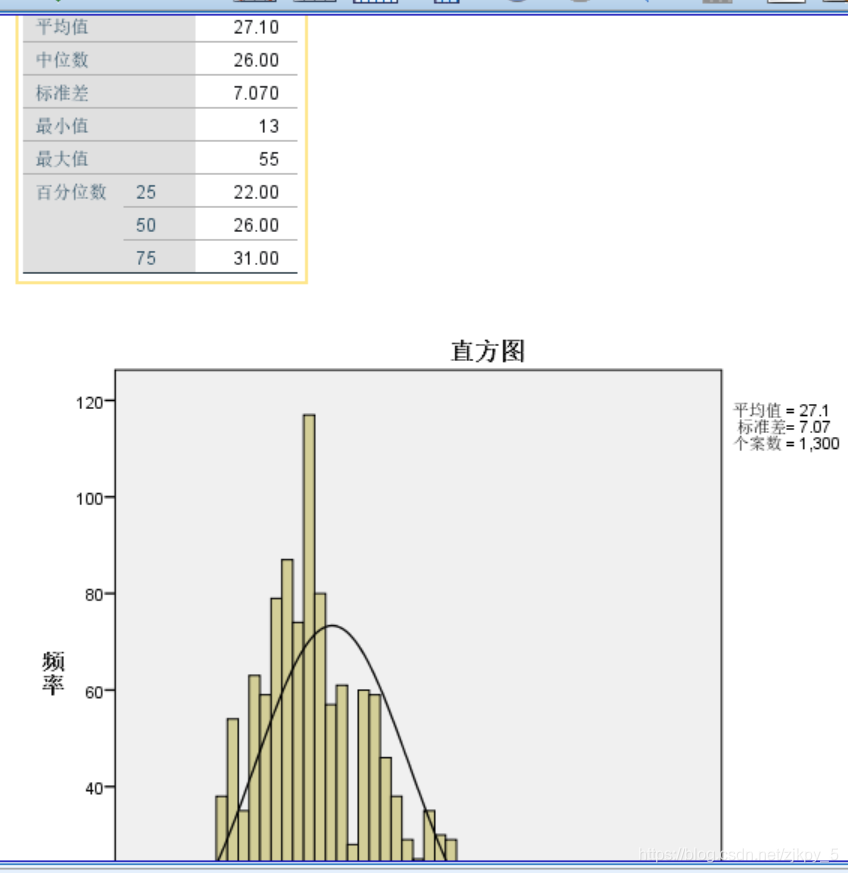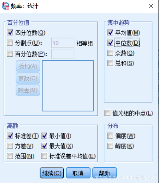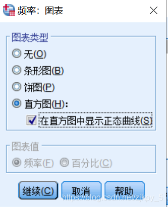 【分析】【描述统计】【频率】,将目标变量移至右框,【统计】