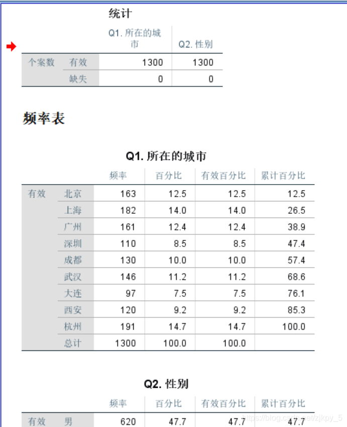 点击【确定】后,输出窗口就会弹出频率分析结果