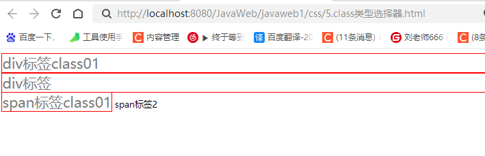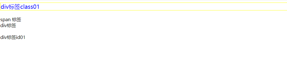 需求1:修改 class 属性值为 class01的 span 或 div 标签,字体颜色为蓝色,字体大小30个像素。边框为1像素黄色实线。