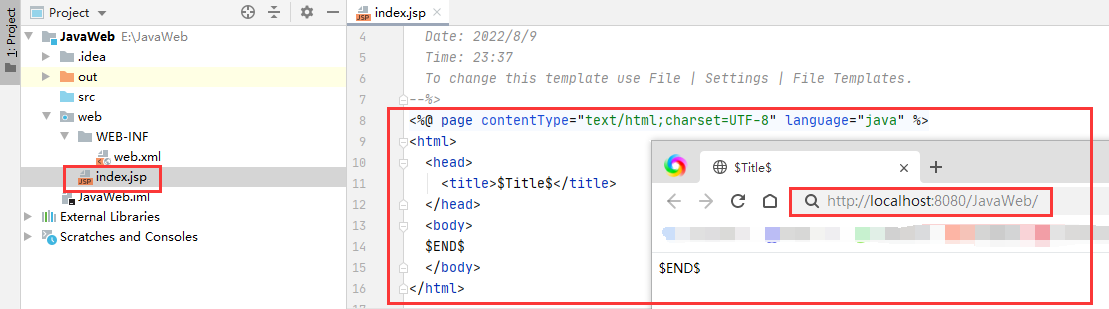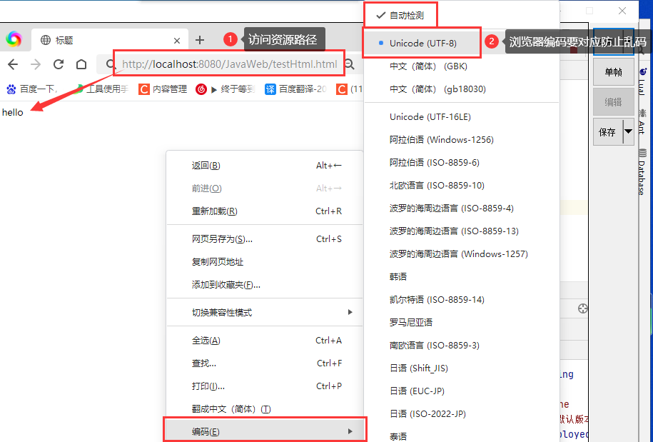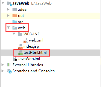 在web项目中新建HTML文件并设置HTML内容,内容及Html文件存放位置如下
