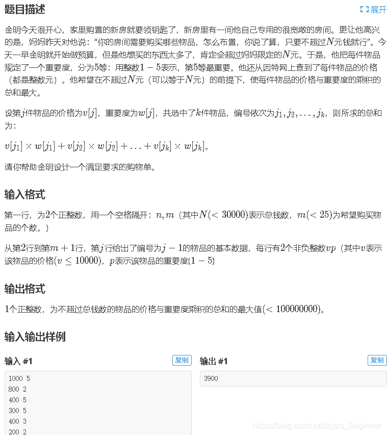 该博客探讨了一种使用动态规划解决购物优化问题的方法。通过状态转移方程f(m,n)=max{f(m-1,n),f(m-1,n+v[m])+w[m]*v[m]}