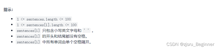 给你一个字符串数组 sentences ,其中 sentences[i] 表示单个 句子 。