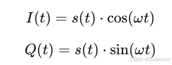 正交解调: 将输入信号与本地正弦和余弦信号相乘: