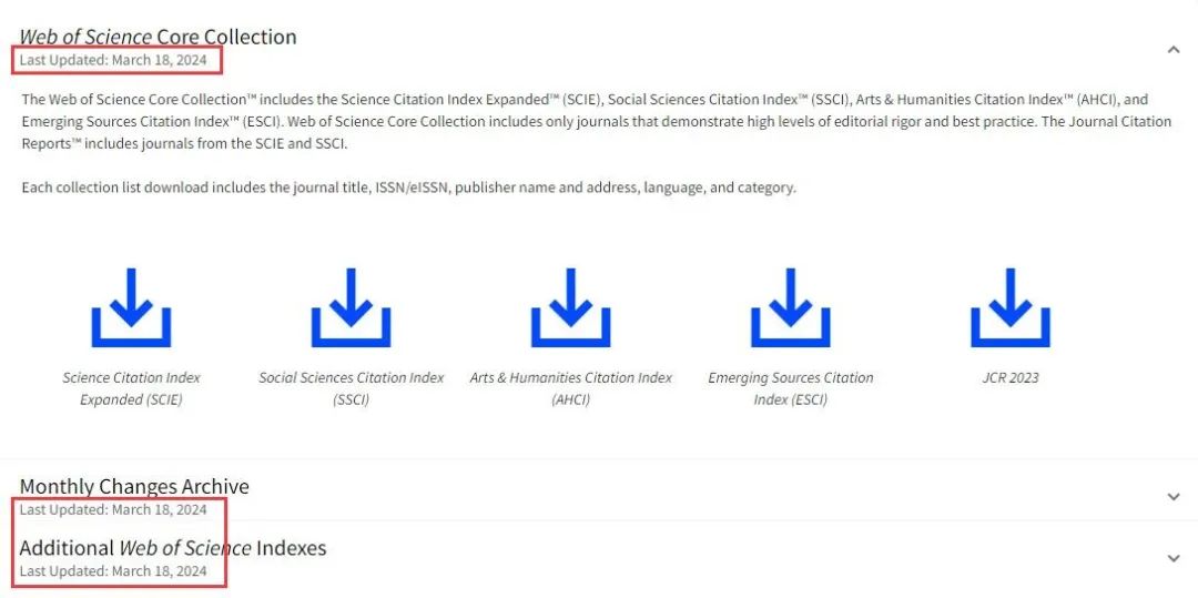 2024年3月18日,科睿唯安本年度第三次更新了Web of Science核心期刊目录。