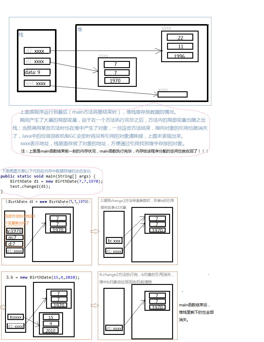 public void change2(BirthDate b) { //下面重新new了一个对象,在堆里面又重新创建了一个对象