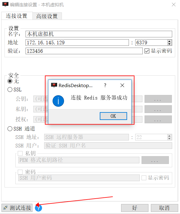 点击测试连接,提示成功