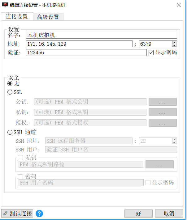 输入ip地址,端口号,以及密码