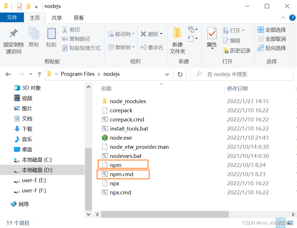 第二步修改node.js目录下的npm和npm.cmd文件,如下两个文件:
