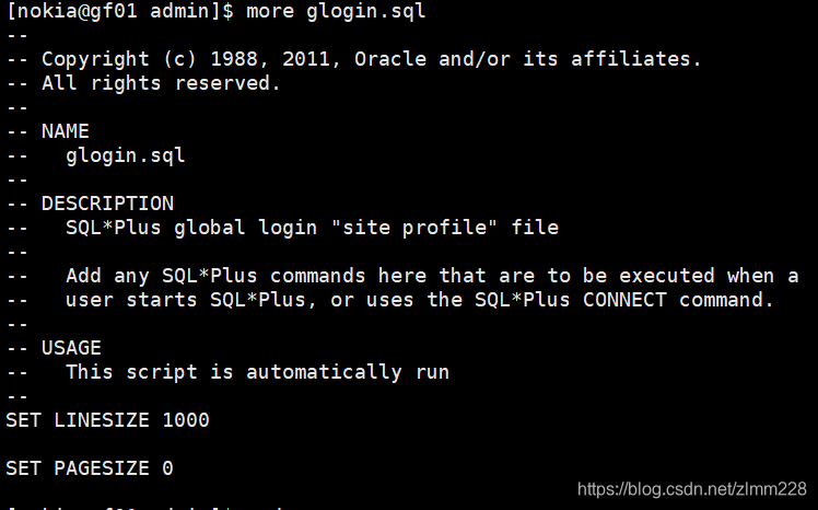 3、编译glogin.sql文件,增加linesize的设置,值设置为你需要的长度,如下: