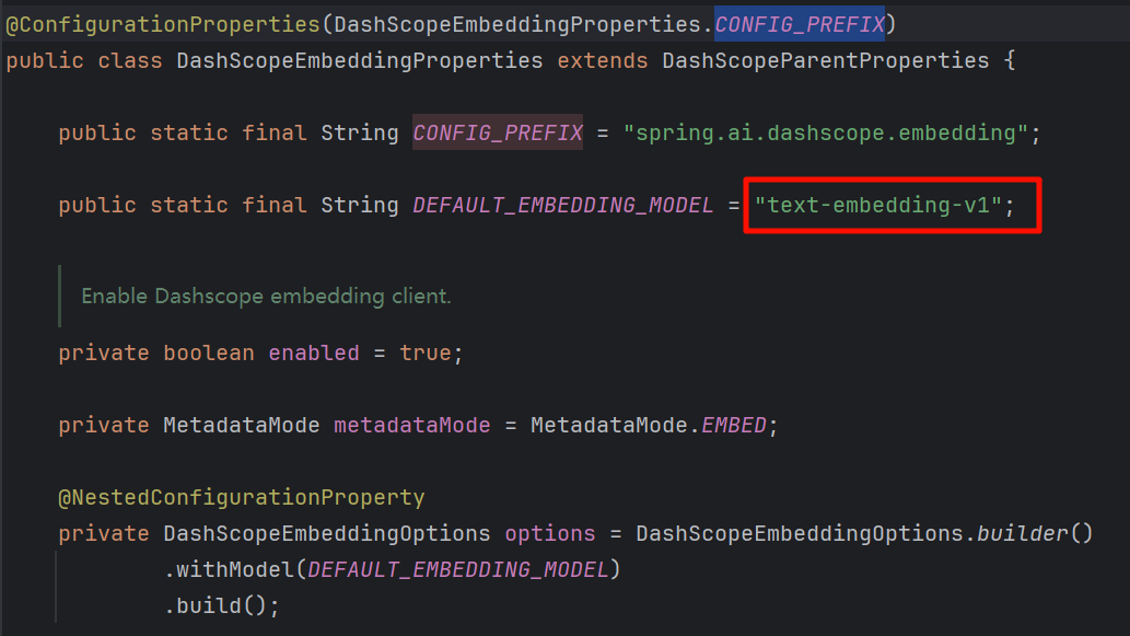 可以通过 spring.ai.dashscope.embedding.options.model 进行修改。