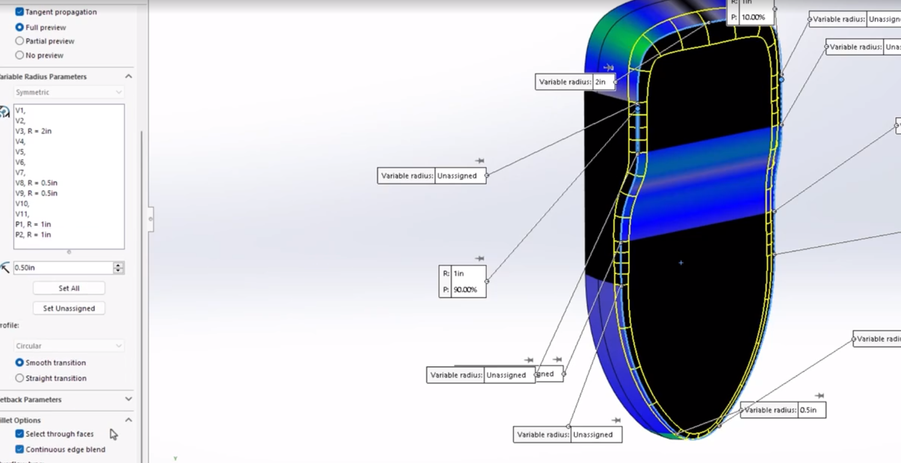 除了样条曲线处理效能的显著提升外,SOLIDWORKS正版2025还对众多实用功能进行了全方面升级,旨在让设计流程更加流畅、有效。例如,在圆角命令中新增的选择加速器功能,能够迅速选中多条边线并进行圆角处理。这对于需要为多条边线应用相同尺寸倒角的设计师来说,无疑是一个巨大的福音。
