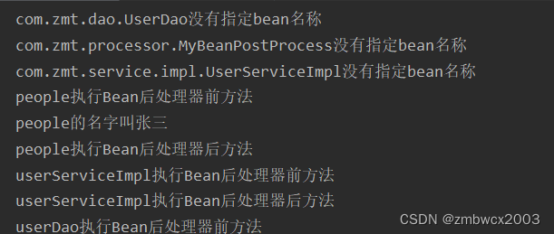 System.out.println("执行Bean后处理器后方法:"+beanName);