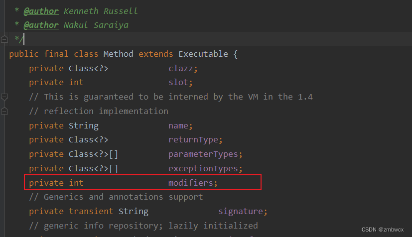 这里修饰符之所以使用int类型而不是String类型是因为在Java中的Method类中,也是使用int来表示修饰符。