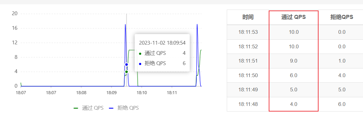 可以看到,updata请求全都可以进行访问。但query方法被限流