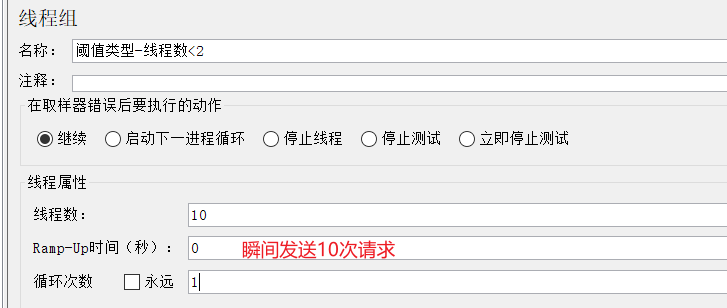这里我们将阈值设置为5。同时使用jemter模拟并发问题