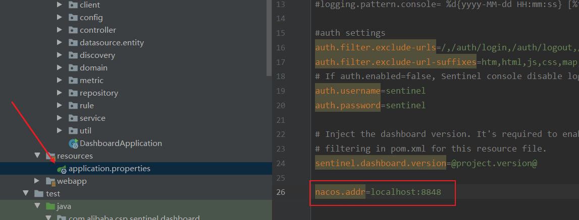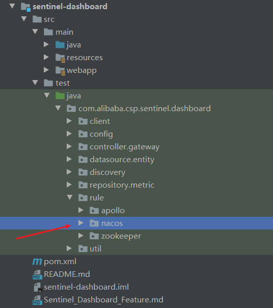 添加nacos的支持。sentinel-dashboard模块下的test文件夹下已经编写好对nacos的支持,我们需要拷贝到main下