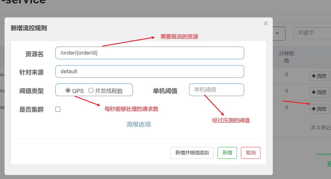 Sentinel默认将规则保存在内存当中。因此每次重启服务后都需要重新设置规则。Sentinel控制台规则管理有如下三种模式