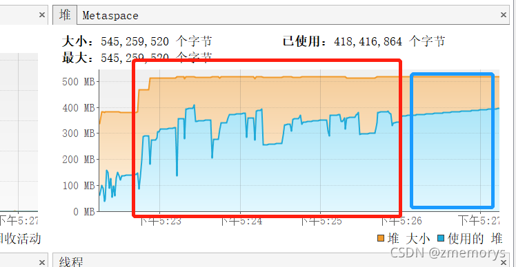 蓝色框是junit睡眠20s后的gc 但是这个gc完后还是占用了很大的内存。