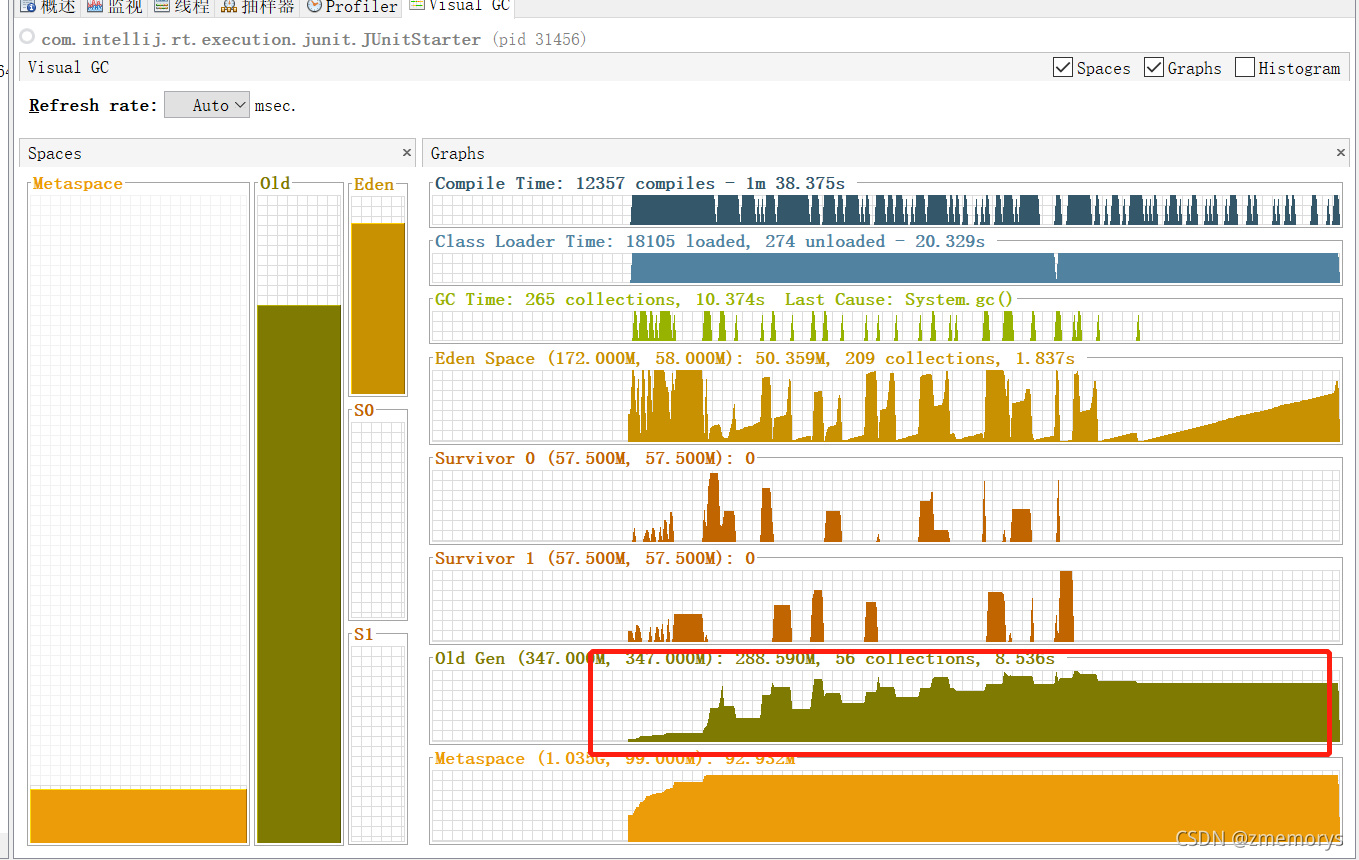 因此本地跑一下数据通过jvisualVM进行观察内存状况。(我通过junit进行单元测试)