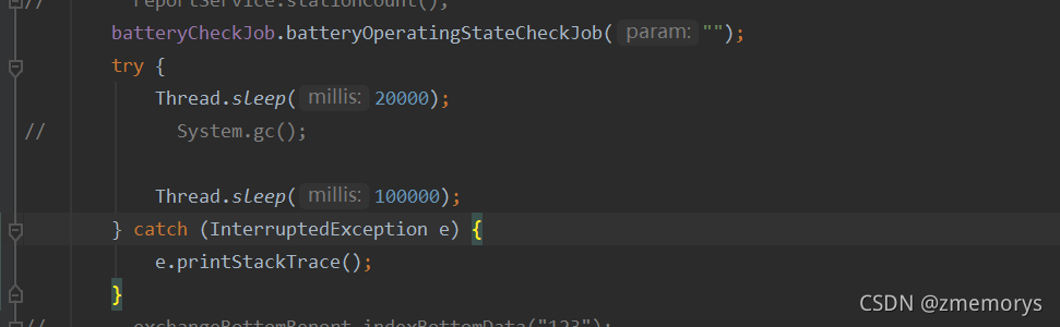 理论方法执行完毕后应该会堆内存会下降。我这里睡眠是为了后边继续观察当前线程的监控情况。
