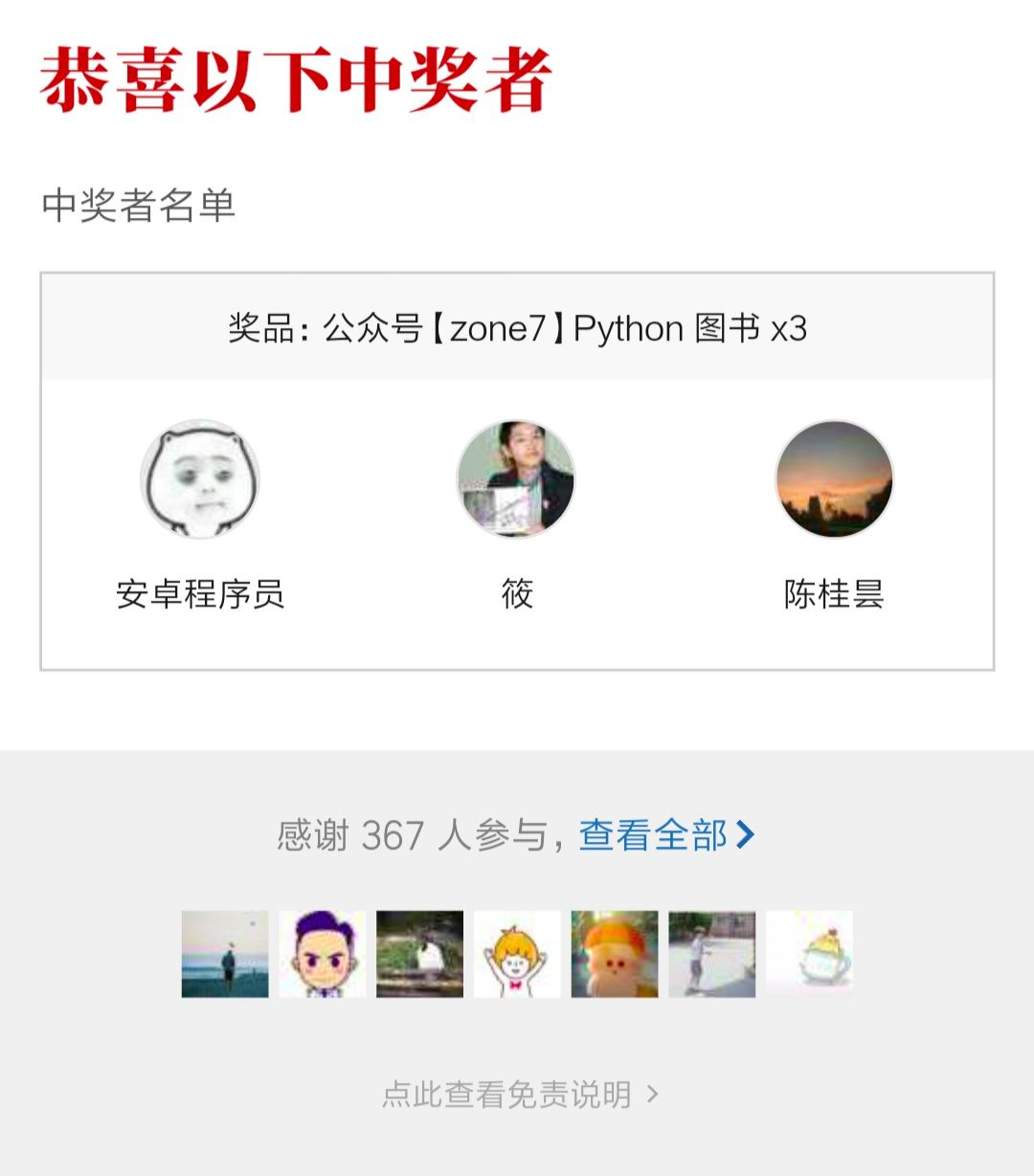 此次中奖的名单为:安卓程序员、筱、陈桂昙,点赞获奖的名单为:被遗忘的人、Eknow。另外,请获奖的朋友主动联系我,选好各自想要的书籍,先到先得。明天中午12:00点前截止,截止后中奖者未与我联系的将视其放弃奖品,其奖品将作为本公众号读者福利发放,发放规则:综合参考留言、转发、点赞、赞赏情况,总之就是与我的互动情况。所以,多留言、转发还是有好处的哈。