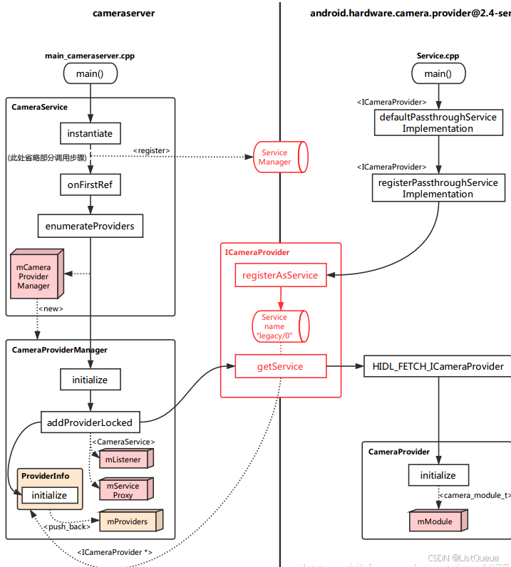 cameraserver 与 provider 这两个进程启动、初始化的调用逻辑,如下图:
