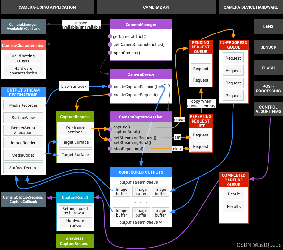 - CameraDevice:描述系统摄像头,类似于早期的Camera。