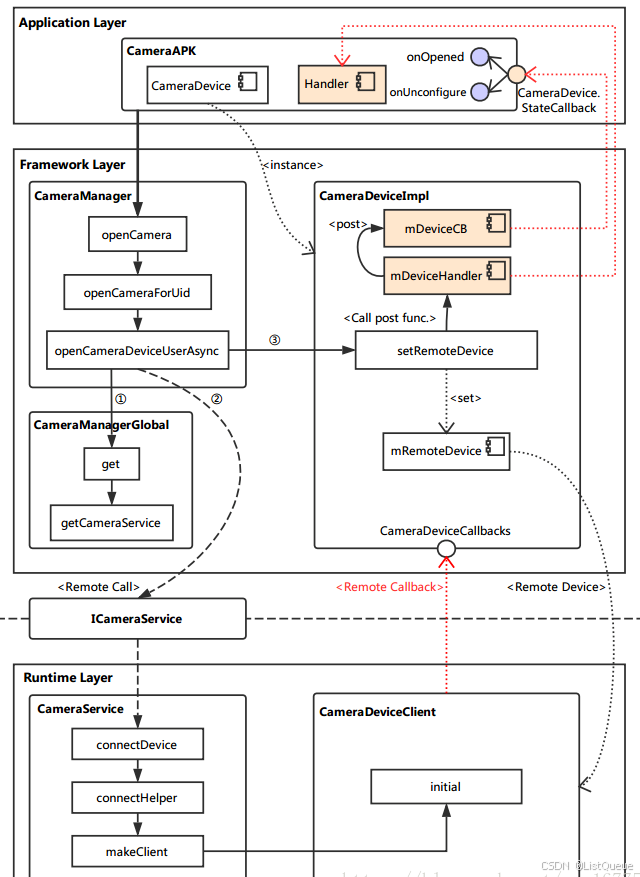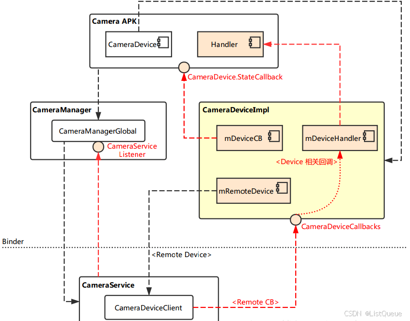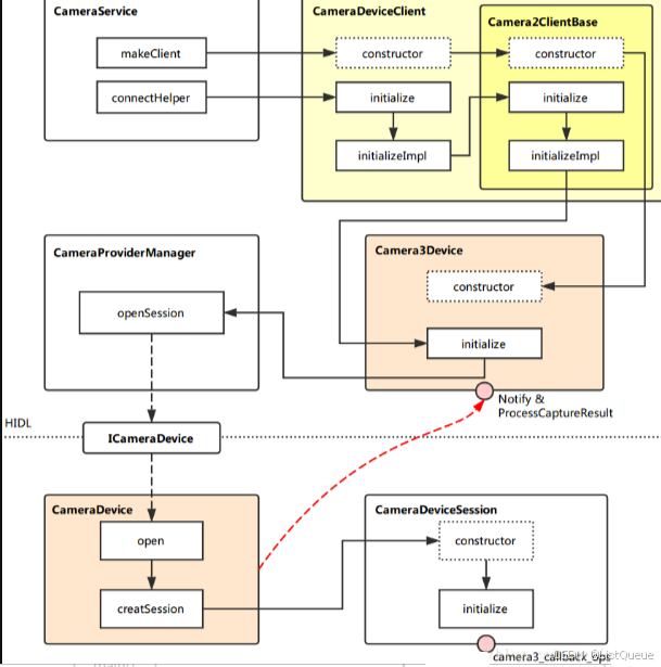 ICameraDeviceCallbacks callbacks = deviceImpl.getCallbacks(); //获取 CameraDeviceCallback 实例,这是提供给远端连接到 CameraDeviceImpl 的接口。
