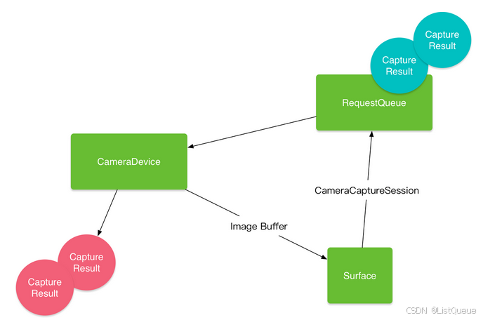 - CaptureRequest:描述了一次操作请求,拍照、预览等操作都需要先传入CaptureRequest参数,具体的参数控制也是通过CameraRequest的成员变量来设置。