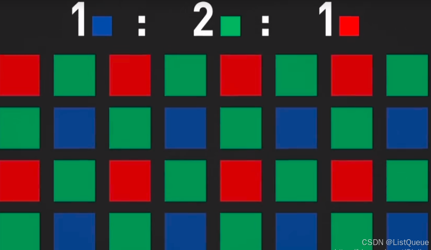 通常红(R)绿(G)蓝(B)是按照1:2:1的比例设置,以模仿对绿光敏感的人眼,这种成为Bayer Filter。