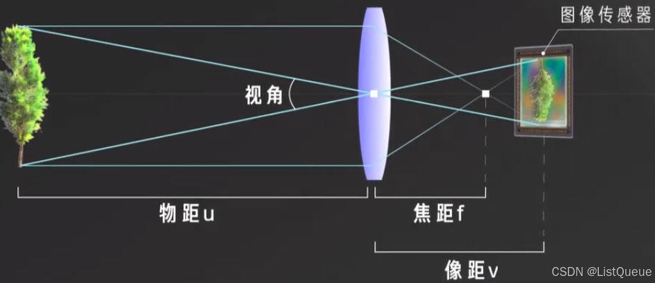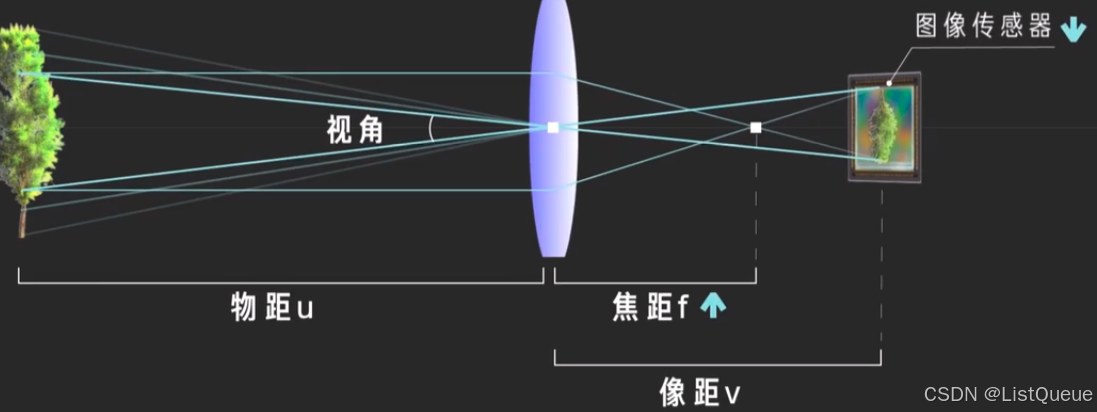 而物体到镜头的距离成为物距,传感器到镜头的距离成为像距。