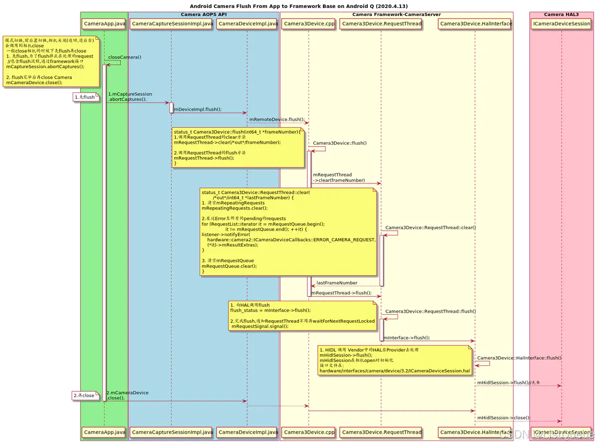 1.应用层: 应用开发者调用AOSP提供的接口即可,AOSP的接口即Android提供的相机应用的通用接口,这些接口将通过Binder与Framework层的相机服务进行操作与数据传递;