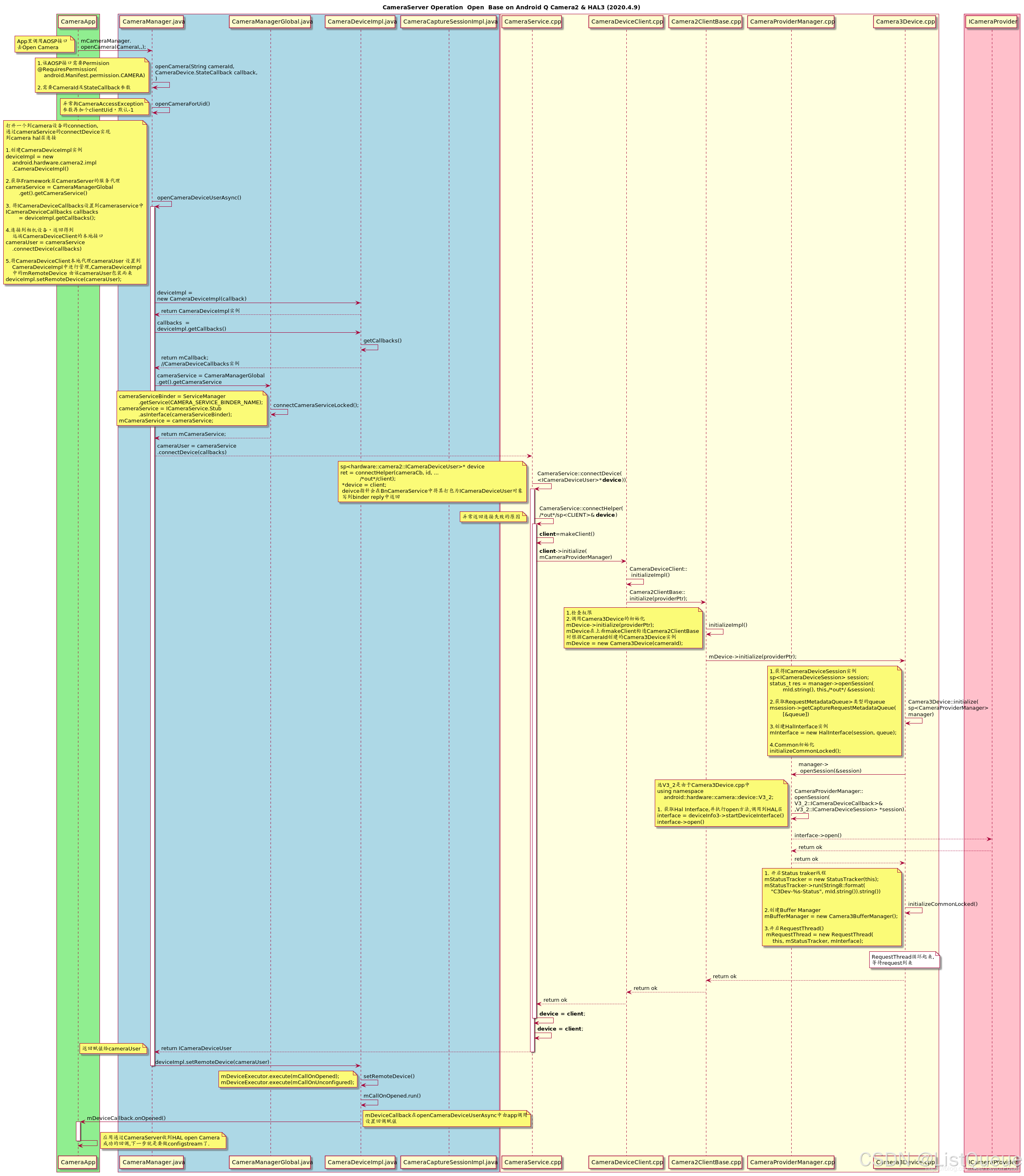 2 在MainActivity onCreate的时候调用API 去通知Framework Native Service CameraServer去connect HAL继而打开Camera硬件sensor.