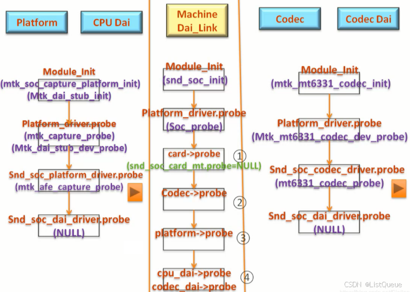 如下图, 在 Platform /machine / codec 各自 module_init 进probe 后,