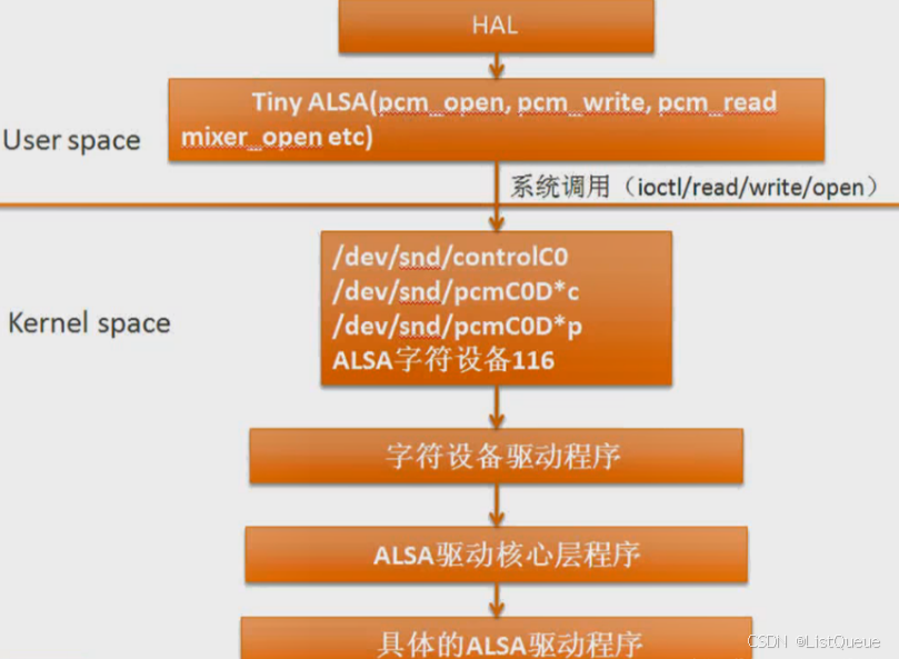 在内核驱动层,ALSA 提供了 alsa-driver,