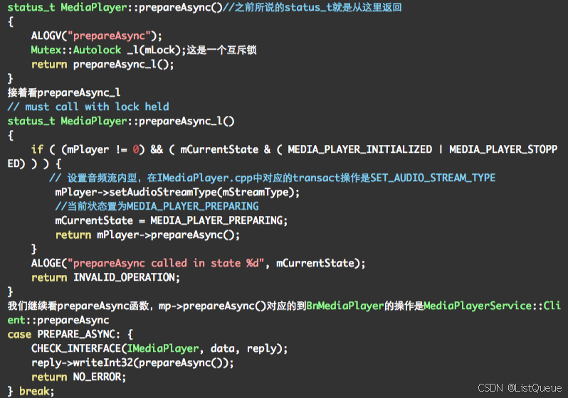 从代码上看,除了最后process_media_player_call中mp->prepareAsync()判断状态时,不一样,